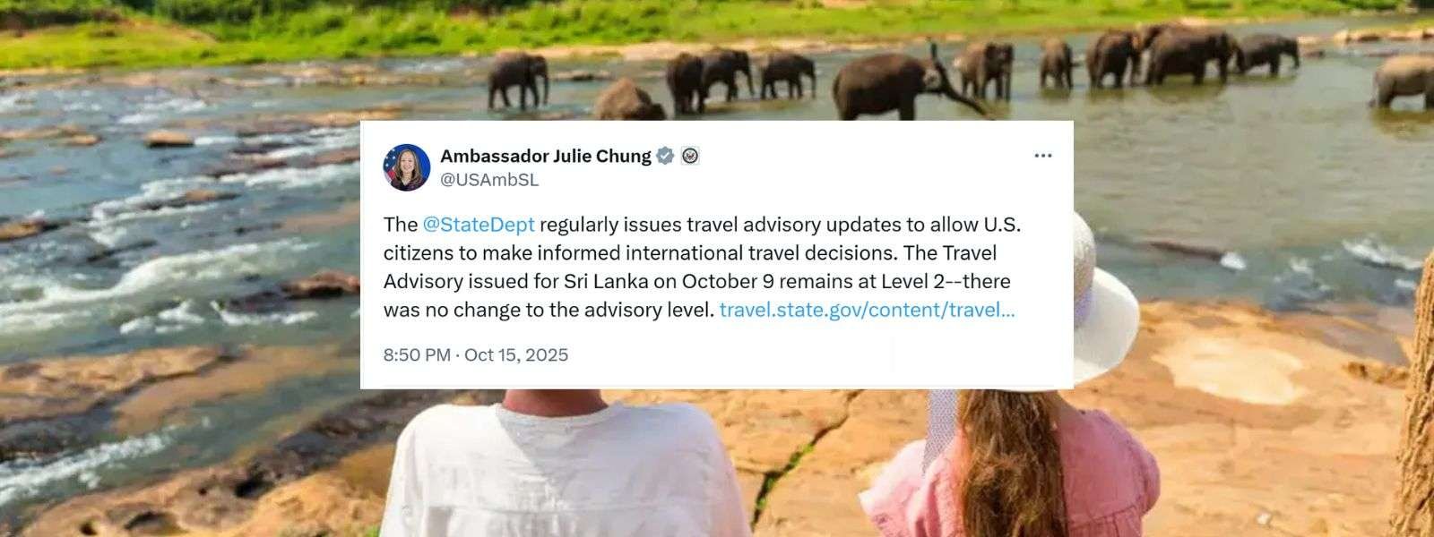 The update, issued on October 9, was clarified by U.S. Ambassador to Sri Lanka, Julie Chung, who emphasized that there has been no change in the advisory level.